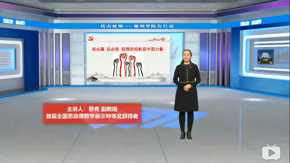 疫情面前,马院女教师充分发挥自己的专业特长和自身优势,将疫情防控与思想政治教育有机结合起来。2月24日,开学第一天,蔡青老师给德州学院全体学生讲解了《战役中的中国力量》。3月9日全体马院教师收看了教育部组织的疫情防控与《思想道德修养与法律基础》《中国近现代史纲要》《马克思主义基本原理概论》《毛泽东思想和中国特色社会主义概论》四门思想政治理论课如何融合的网上讲座,随后,马院全体教师把讲座内容与所教班级学生进行了广泛的沟通、交流和讨论。在每天的线上课程中,每一个老师都注重把将疫情防控和思想政治教育有机结合起来。