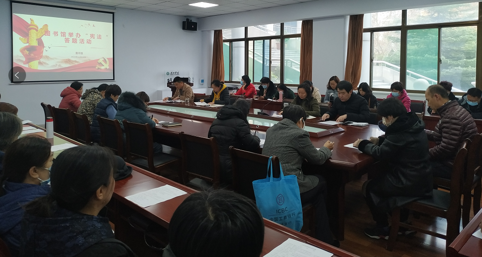 为贯彻落实习近平总书记关于宪法学习宣传教育的重要指示精神,推进图书馆宪法学习宣传教育深入开展,11月24日下午,图书馆工会在一楼会议室举办《中华人民共和国宪法》知识答题活动,全体馆员参加了答题活动。