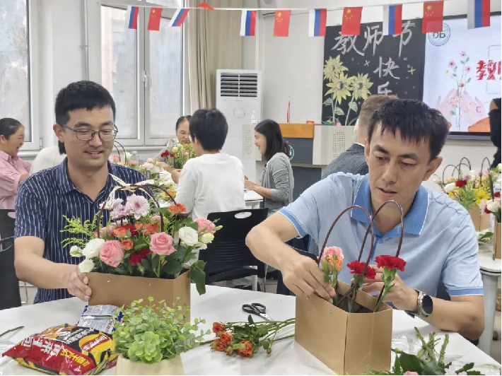 9月10日下午,别尔哥罗德食品科学学院在健行楼活动室举办了教师节插花活动。学院教职工及外教老师参加了活动。