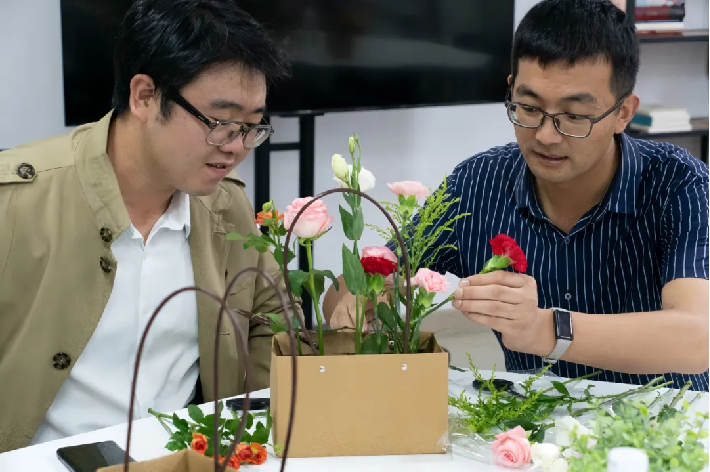 在老师们的巧手下,一束束鲜花变成了一个个精美的艺术品,花艺师对各个作品进行了点评。